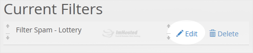 3. Under Current Filters are displayed all existing filters. Click Edit next to the appropriate one.